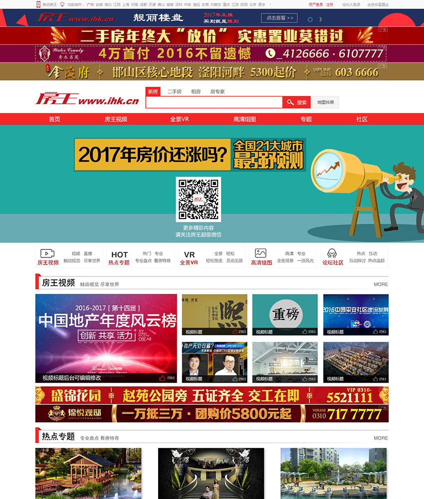 房王网提供多样化的网络广告形式,为项目精准锁定目标购房客户,定制化形象展示,及时将优惠信息广而告之,加大项目曝光率。以楼盘库为基础,汇总包括优惠、开盘等各种活动的资讯,同时从市场、政策、土地、房贷等角度,为客户提供购房梳理。由此,2016年累计为国内外知名房企服务的项目超过1500+,网站阅读量超1000万+,手机端阅读量超 1000万+,微信端阅读量超2000万+,具有丰富的地产服务经验。